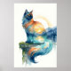 Affiche Mystical Sunset Cat Double Exposure Watercolor