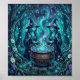 Cette affiche mystique présente deux sorcières préparant une potion lumineuse dans une forêt enchantée éclairée par la lune, entourées de magie tourbillonnante et de lumière bleu sarcelle lumineuse. Fini dans un style pictural à l'acrylique huileuse.