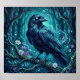 Cette affiche mystique présente un corbeau bleu aux yeux brillants perché dans une forêt enchantée au clair de lune, entourée de magie tourbillonnante, de fleurs et d'arbres tordus. Fini dans un style pictural à l'acrylique huileuse.