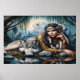 Affiche Mystique Une Femme Amérindienne Avec Loups 36x24