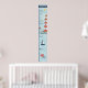 Dive into a delightful underwater adventure with this charming nautical children's growth chart. Against a soft blue, wavy stripe background, adorable hand-drawn illustrations of a classic red and white lighthouse and starfish create a fun design and add the perfect touch of coastal whimsy to a baby nursery, toddler bedroom, playroom, or beach house. Personalize it with your child’s name to create a meaningful keepsake that grows right along with them. Part of our coordinated 'Nautical Kids’ Room' collection. Note: design adapted from generative content.