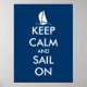 Affiche nautique avec navire | Restez calme et naviguez | Vintage WII slogan parodie. Faites votre propre parodie avec l'aide de ce Gardez calme et continuez modèle. La couleur Arrière - plan peut être personnalisable à partir du bleu marine.