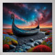 Affiche Navire long Viking sur un paysage vibrant