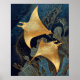 Affiche Navy Blue& Gold Manta Rays Elegant Kintsugi Art
