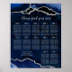 Affiche Navy Silver Agate Wedding Seating Chart 12 Table