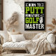 Cette illustration audacieuse célèbre un maître du minigolf. "BORN TO" est en haut en blanc, encadré par des accents géométriques. Ci-dessous, "PUTT" s'affiche en évidence dans une police verte vibrante et en détresse. "MINIATURE" en blanc mène au "GOLF" en vert, accompagné d'un sac de golf rempli de clubs en blanc. Le texte en bas "MASTER" est en blanc. Le design général est d'une esthétique robuste et obscure, parfaite pour un mini-golfeur passionné.