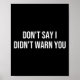 Affiche Ne dis pas que je ne t'ai pas prévenu