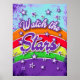 Regardez l'affiche de tipographie colorée The Stars Cute avec une citation inspirante. affiche rétro de style vintage avec un dicton inspirant et message positif, étoiles et arc-en-ciel. pour chambre pour filles, chambre bébé, chambre pour enfants.