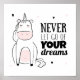 Photo de tiny_selena | Shutterstock. ID d'image : 1042127608 | Ce design présente une licorne mignonne dessinée à la main avec une citation inspirante.