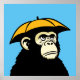 Image amusante d'un chimpanzé portant un casquette parapluie.