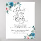 Don't Say Baby Game Sign avec des flores bleu et rose d'aquarelle et de la verdure correspondent à notre collection de fleurs rose et bleu que l'on trouve dans la boutique Adore Paper Co. Zazzle.