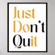 Présentez l'affiche "Just Don't Quit", une oeuvre d'art murale remarquable conçue pour vous motiver et vous inspirer chaque jour. Cette affiche comporte un message audacieux et impactable, vous rappelant de persévérer dans les défis que vous rencontrez. Le design minimaliste garantit que les mots puissants occupent le devant de la scène, ce qui en fait un complément parfait à toute pièce. Imprimée sur du papier de haute qualité, cette affiche présente des couleurs vives et des détails pointus, ce qui lui permet de se démarquer dans n'importe quel cadre. Que ce soit dans votre bureau, votre chambre à coucher ou votre espace de vie, cette affiche est une source constante d'encouragement. Un cadeau idéal pour ceux qui apprécient un coup de pouce motivant dans leur décoration, les aidant à rester concentrés et orientés vers leurs objectifs. Tags les plus recherchés : peinture murale motivante, poster de devis inspirant, décoration de message de persévérance, impression de haute qualité, dessin audacieux, affiche de couleur vibrante, art d'encouragement quotidien, décoration murale stylisée, rappel de croissance personnelle, impression d'esprit positif, cadeau inspirant unique, qualité de papier durable, motivation au bureau à domicile, affiche design minimaliste, message orienté action