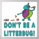 Don't Be A Litterbug est un message pour les gens qui laissent leur litière où qu'ils aillent. Ramenez-le chez vous, utilisez la poubelle la plus proche ou recyclez-le!