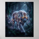 Un tigre cosmique féroce émerge d'une jungle de nébuleuse lumineuse, son corps puissant imprégné de textures d'espace profond et de motifs d'étoiles lumineuses. Ses rayures emblématiques se transforment en bandes fluides d'énergie cosmique rayonnante, palpitant de vie et d'intensité. Des yeux dorés brûlent de concentration et de force primitive tandis que la brume et le feuillage céleste l'entourent. Cette œuvre d'art saisissante capture la puissance brute et le mysticisme, en faisant une pièce maîtresse parfaite pour les intérieurs audacieux, la décoration moderne et les collectionneurs d'art mural de fantasy dynamique et à fort impact.