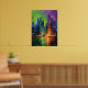 Vibrant neo expressionist skyline artwork inspired by Singapore and the modern skyline of Marina Bay. Bold brush textures and intense sunset colors transform the futuristic city into a dramatic urban cityscape painting. Perfect wall art for lovers of Singapore, travel inspired art and contemporary expressionist skylines.