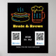 Panneau d'affichage de l'option de paiement du code QR moderne et élégant pour votre stand d'événement, camion de nourriture mobile ou stand de concession, avec un hot-dog néon et une tasse de bière sur l'arrière - plan noir. Ajoutez votre code qr personnalisé et les détails de l'entreprise.