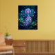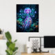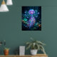 A radiant jellyfish blooms through the depths of a futuristic ocean, glowing with cyan, magenta, violet, and electric blue light. Flowing tentacles transform into elegant bioluminescent tendrils and botanical shapes, creating a hypnotic sense of movement and life. Surrounded by luminous reef forms, dark abyssal water, and floating particles, this design feels luxurious and dreamlike. Perfect for modern interiors, beach homes, meditation spaces, or lovers of marine life and glowing underwater fantasy.