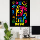 Allumez votre mur avec la personnalité néon. Cette oeuvre abstraite de chien combine des formes géométriques de néon et des motifs d'inspiration tribale aux couleurs vives (rose, jaune, vert et bleu) sur un riche arrière - plan noir. Des soleils et des fleurs environnants ajoutent un côté vivant. Parfait pour les studios, les salles de musique ou les intérieurs audacieux et modernes.