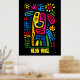 Affiche Neon Noise Dog - Art animal géométrique Abstrait
