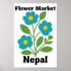 Affiche Nepal Flower Market Teal Blossom & Green Leaf