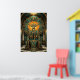 A majestic stag with large antlers framed by sun rays and geometric architecture. Perfect for a masculine or classic vintage interior.