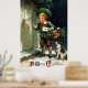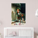 Un imprimé de charme de 1911 montrant un jeune garçon et son chien livrant des cartes et des cadeaux de Noël. Le salut " A Joyeux Noël " imprimé en bas.