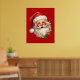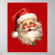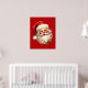 Poster avec une joyeuse illustration d'un Père Noël de style vintage aux joues rouges roses. portant son chapeau de Père Noël rouge classique et son grand ours blanc. Un spring de saint ajoute à l'esprit festif de fête de ce design.