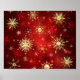 Affiche Noël Golden Snowflakes sur Arrière - plan rouge
