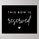 Affiche Noir Cette rangée est Réservée Chaise Siège Réserv