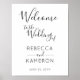 Cette affiche d'accueil mariage est décorée dans un style design noir et blanc. Ce panneau d'accueil mariage propose du texte de style manuscrit noir sur un arrière - plan blanc.