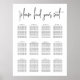 Le tableau de sièges d'invités mariages présente vos noms dans des lettres manuscrites modernes, avec votre date de mariage et les assignations de tables d'invités en dessous. Espace prévu pour 12 tables maximum. "S'il vous plaît trouvez votre siège" ou votre choix de texte apparaît en haut. Couleur : Cendres, un noir doux.