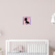 Cute noir magique aquarelle unicorne avec oreilles rose pastel et ombre or et crinière et queue noire sur un rideau d'imaginaire de couleur violet et rose avec des accents d'or. Un ajout coloré et unique à une fête de licorne.