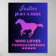 Ce poster est parfait pour toute fille qui a une passion pour les chevaux! Avec un coloris rose et bleu vif, il présente le message ludique et amusant "Just a Girl Who Loves Thoroughbreds" en lettres audacieuses et élégantes. Le design comprend également une silhouette de cheval, mettant l'accent sur le thème et ajoutant un élément d'intérêt visuel. De plus, cette affiche peut être personnalisée avec un nom, ce qui en fait un ajout unique et spécial à n'importe quelle chambre ou espace de vie. Que vous soyez un équestre chevronné ou tout simplement aimer la grâce et la beauté des chevaux, cette affiche ajoutera une touche de personnalité et de charme à toute chambre.