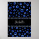 Affiche Nom personnalisé, pattes de chien en paillettes bl