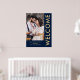 Noms de photos élégants Mariage de bienvenue bleu marine or. Entièrement personnalisable, personnalisez facilement vos noms et date et changez les couleurs de fond et de texte si vous le souhaitez via l'option modifier davantage.