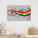Affiche Notes musicales en noir et gris arc-en-ciel