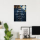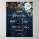 Un design de mariage élégant avec une calligraphie élégante complétée par un magnifique bois bleu, des lampes à cordes de jardin et un bleu blanc floral avec parties scintillant d'or. Vous pouvez personnaliser ceci avec vos détails.