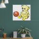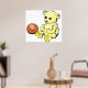 Un nounours jaune mignon assis avec un ballon. Ce design est vraiment efficace sur ces affiches