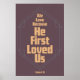 L'Apôtre Jean, en 1 Jean 4:19, nous rappelle que "Nous aimons parce qu'Il [Dieu] Nous aimait d'abord." Cette affiche est un grand cadeau pour votre ami chrétien ou un parent, ou pour une école du dimanche ou un enseignant de l'école chrétienne. Idéal pour une école du dimanche ou une classe d'école chrétienne. Regardez mes autres produits avec ce design, et d'autres vers de la Bible avec des designs art déco.