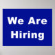 Une affiche bleu moderne pour une vitrine de magasin avertissant le public que vous embauchez du personnel.