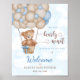 Affiche de bienvenue pour Baby Shower avec un ours en peluche aquarelle - Nous pouvons à peine attendre. Articles assortis disponibles.
