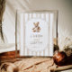 Guidez les clients avec un style intemporel. Ce panneau présente des rayures d'aquarelle douce, un ours en peluche vintage et un script élégant — l'endroit idéal pour afficher vos cartes et votre table de cadeaux.