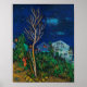 Poster présentant un petit paysage de style impressionniste, vue nocturne sur Haïfa, arbre nu, herbe verte, maisons isolées et ciel bleu foncé. Peinture pastel, pastels doux sur papier, 2021 OEuvre d'un projet d'art virtuel en plein air. © Julia Khoroshikh www.juliakhoroshikh.art #paysage nocturne #peinture de nuit #pastelpaint #virtualpleinair #cityscapeart #modernimonism #affiches #wallart #zazzle #zazzlemade