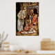 L'affiche La nuit avant Noël Enfants au lit d'Arthur Rackham est une illustration fantasque et détaillée de 1915, qui dépeint un moment magique de la veille de Noël. Dans cette scène captivante, un homme habillé en pyjama tient un chandelier tandis qu'il aperçoit le Père Noël, juste au moment où il remonte la cheminée après avoir livré des cadeaux. L’utilisation magistrale de lignes fines et de tons terre et muets donne vie à la pièce, où les enfants dorment paisiblement dans leur lit, sans prendre conscience de l’événement enchanteur qui se déroule à proximité. L’atmosphère cosy est rehaussée de subtiles décorations de vacances, tandis que la lumière des bougies et l’expression étonnante de l’homme ajoutent à la magie et au mystère de la nuit de Noël. Ce poster vintage saisit parfaitement le charme et l'merveille de la période des fêtes, ce qui en fait une oeuvre d'art chère pour tout cadre festif.
