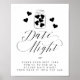Élégant panneau de calligraphie pour mariage ou fête de fiançailles - Bocal Mason de soirées en amoureux - partagez vos meilleures idées pour que les mariés les utilisent comme futures soirées en amoureux, puis déposez-les dans le bocal. Signez avec de belles lettres fantaisistes et votre texte personnalisé. Un design formel élégant et simple en noir et blanc ou dans la couleur de fond de votre choix. Cliquez simplement sur le lien "personnaliser davantage", affiché sous la zone de personnalisation du texte à droite, et choisissez votre couleur de fond personnalisée. Ce modèle d'affiche de panneau permet de créer rapidement et facilement des ajouts époustouflants à votre décoration de mariage. Les panneaux peuvent être agrandis, il existe de nombreuses tailles au choix, ainsi que des options de cadrage et de mat personnalisés. Panneaux de signalisation personnalisés pour mariage.