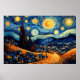 Peinture d'une nuit étoilée avec le ciel et Pleine lune sur la ville Parodie sur Vincent Van Gogh Illustration pour Wall Art et Cafe Decor. Photo