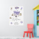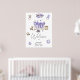 L'invitation montre l'aquarelle d'un berceau, d'une nourrice mobile sous forme de nuages ronds violets, des jouets pour enfants : un éléphant rongeur, un canard sur roues, un ours en peluche, un lapin, un bib, une sucette, une pyramide.