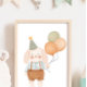 Affiche Nursery de bébé mignon Lapin rose Nuage et Étoiles