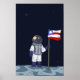 Apresentamos um pôster exclusivo que captura a imagem inspiradora de uma astronauta em pé na superfície da lua, segurando orgulhosamente a bandeira da Bahia. A cena é envolvente, unindo a vastidão do espaço com as cores vibrantes da bandeira, simbolizando a força e a identidade cultural da Bahia em um cenário cósmico.
