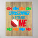 Un premier anniversaire coloré sur le thème de la pêche pour aider à célébrer "O'Fish-Ally One". Poissons rouges, verts, oranges et bleus sur un arrière - plan en bois en détresse
